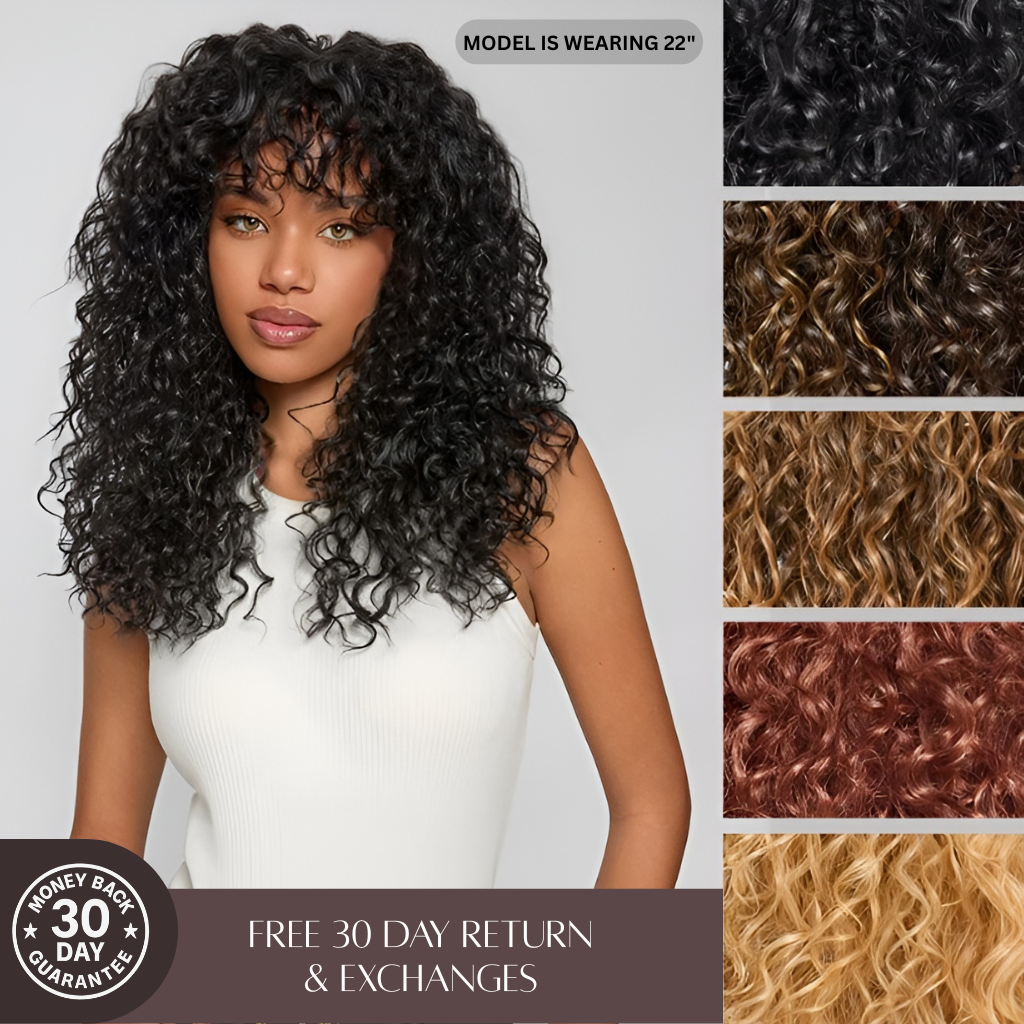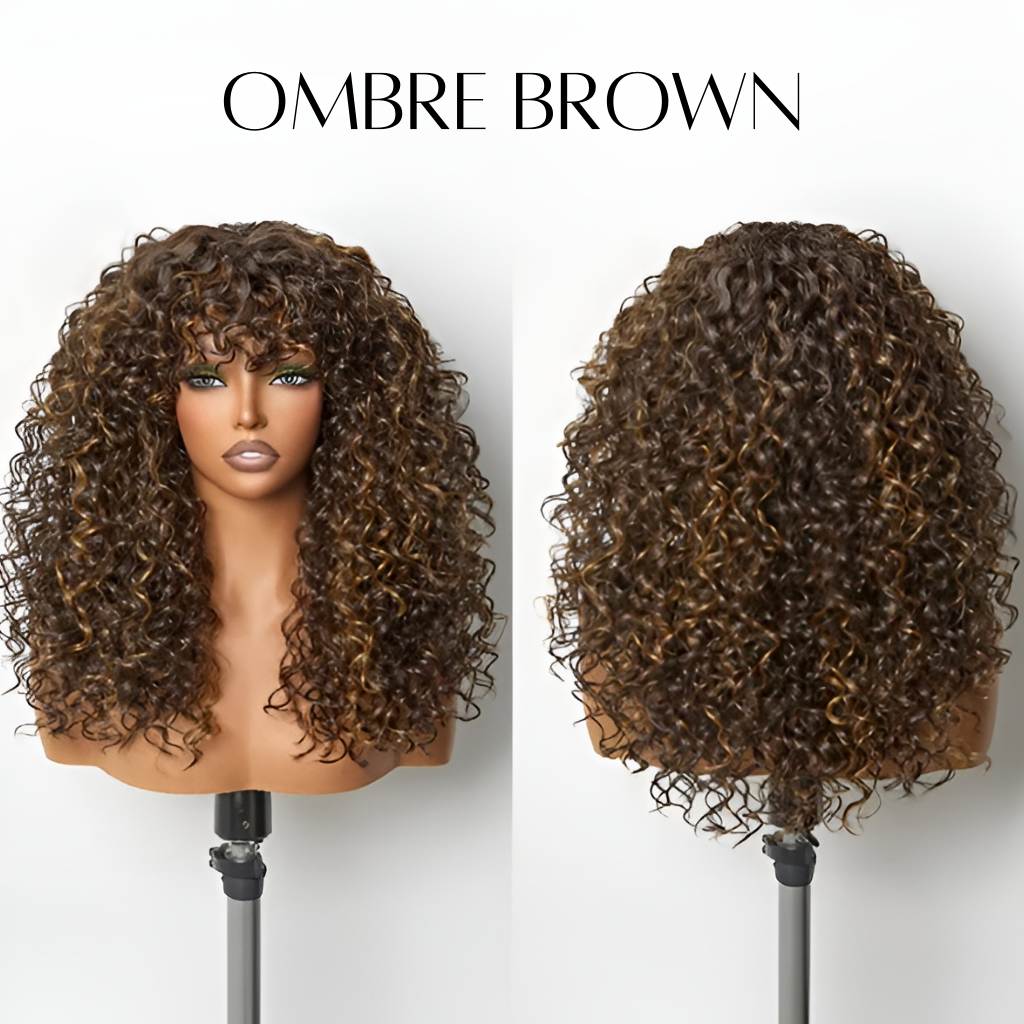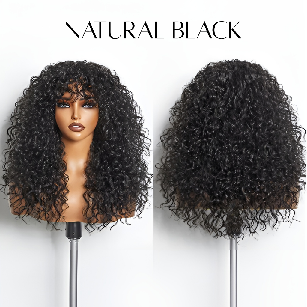 Frovia Wear & Go Human Hair Blend Curly Wig With Bangs