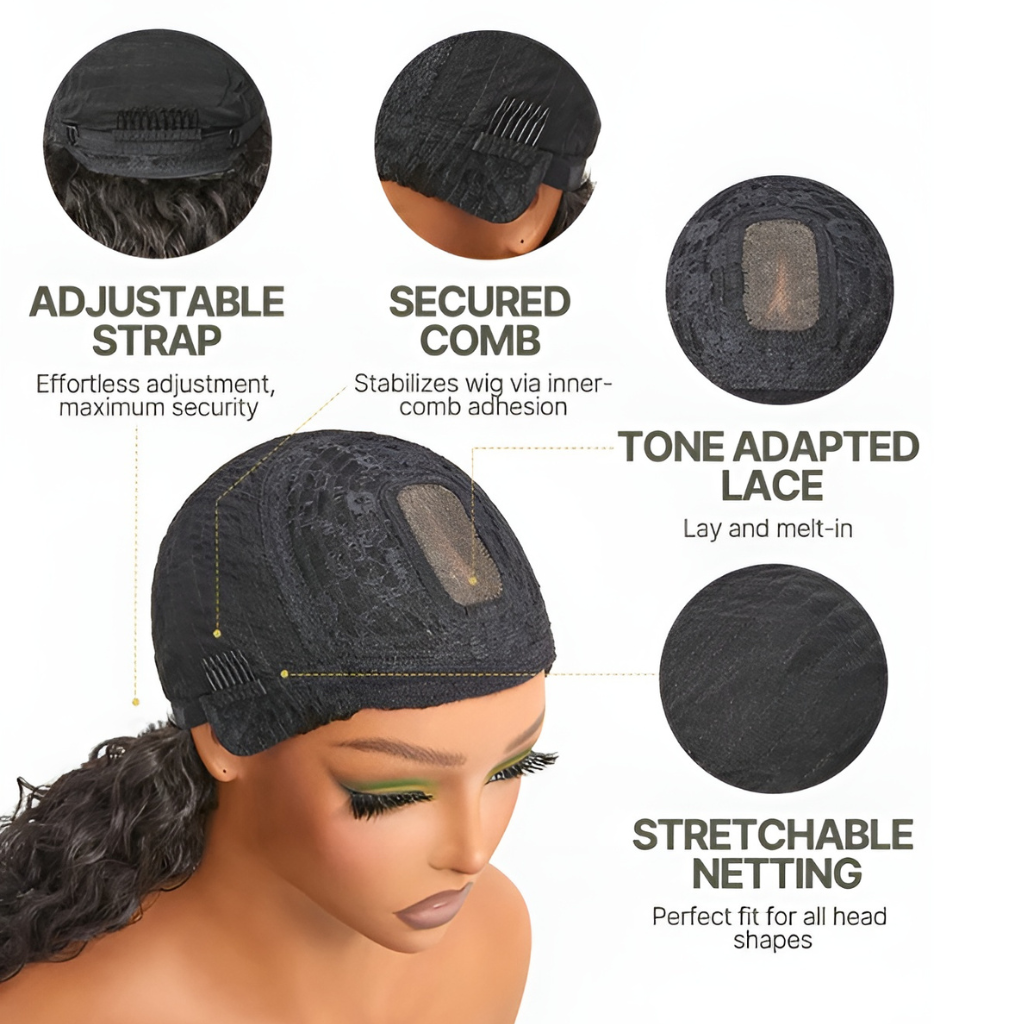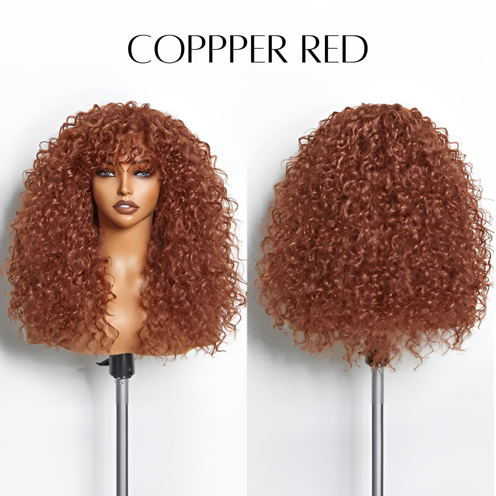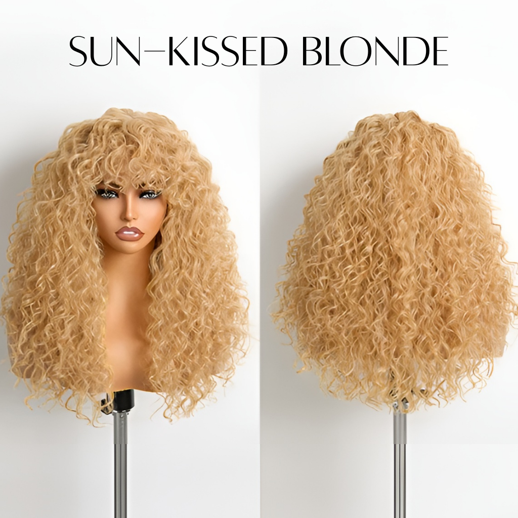 Frovia Wear & Go Human Hair Blend Curly Wig With Bangs