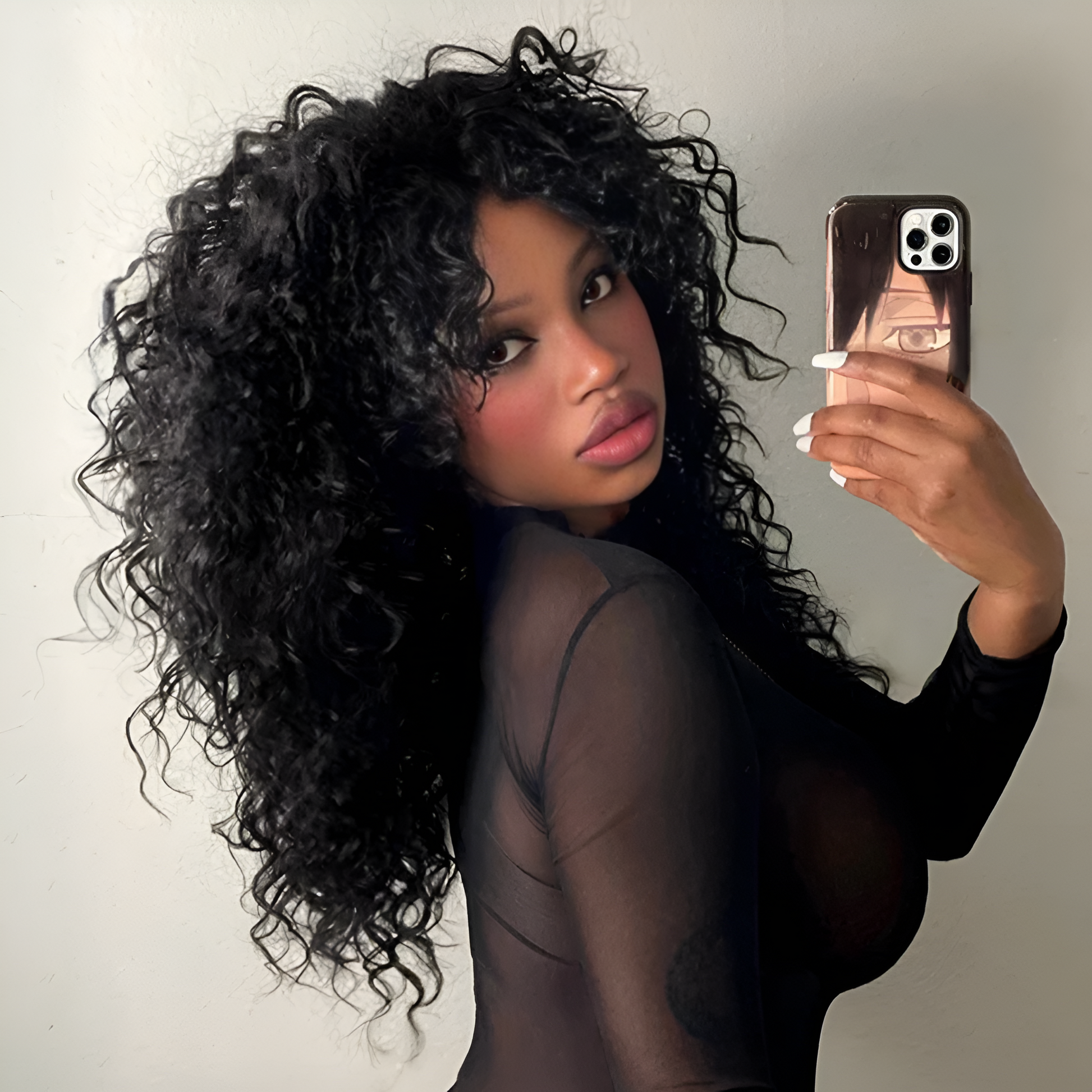 Frovia Wear & Go Human Hair Blend Curly Wig With Bangs