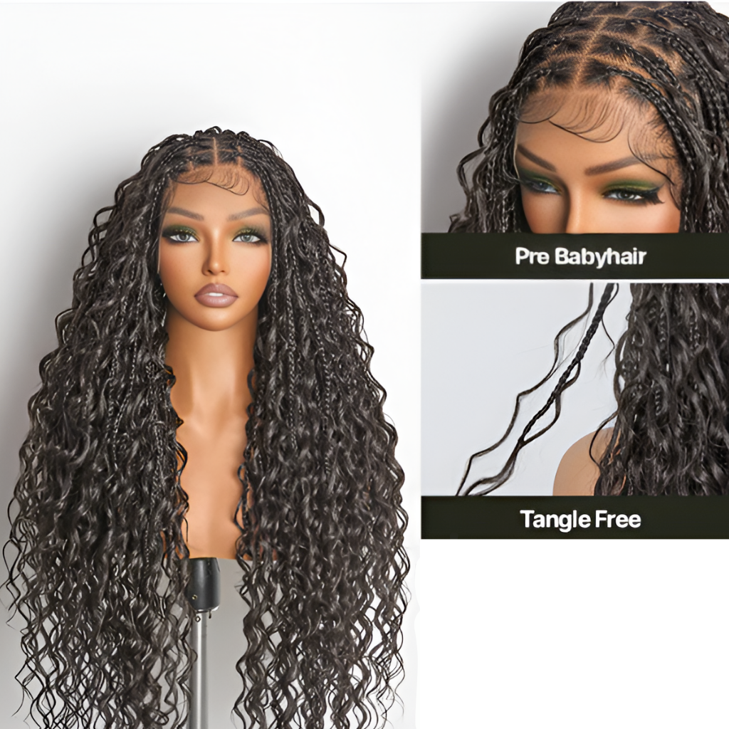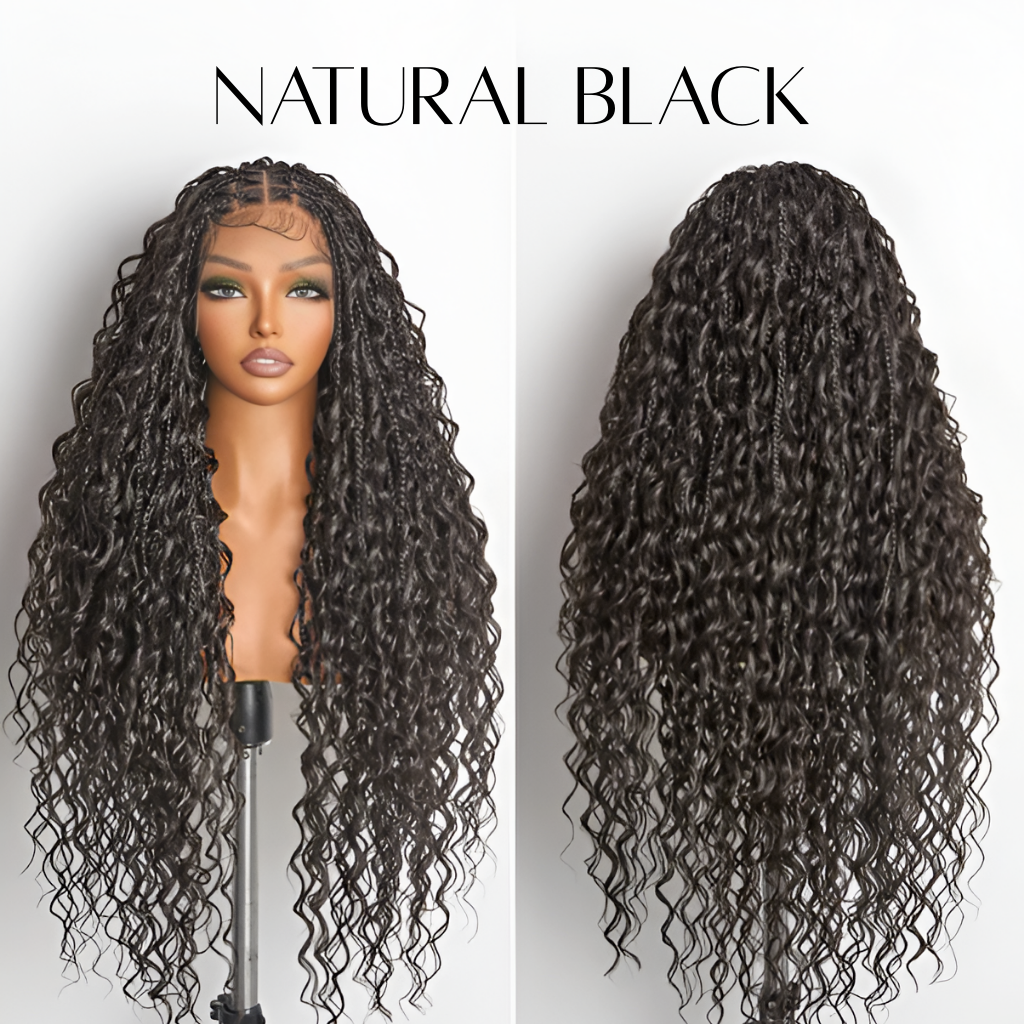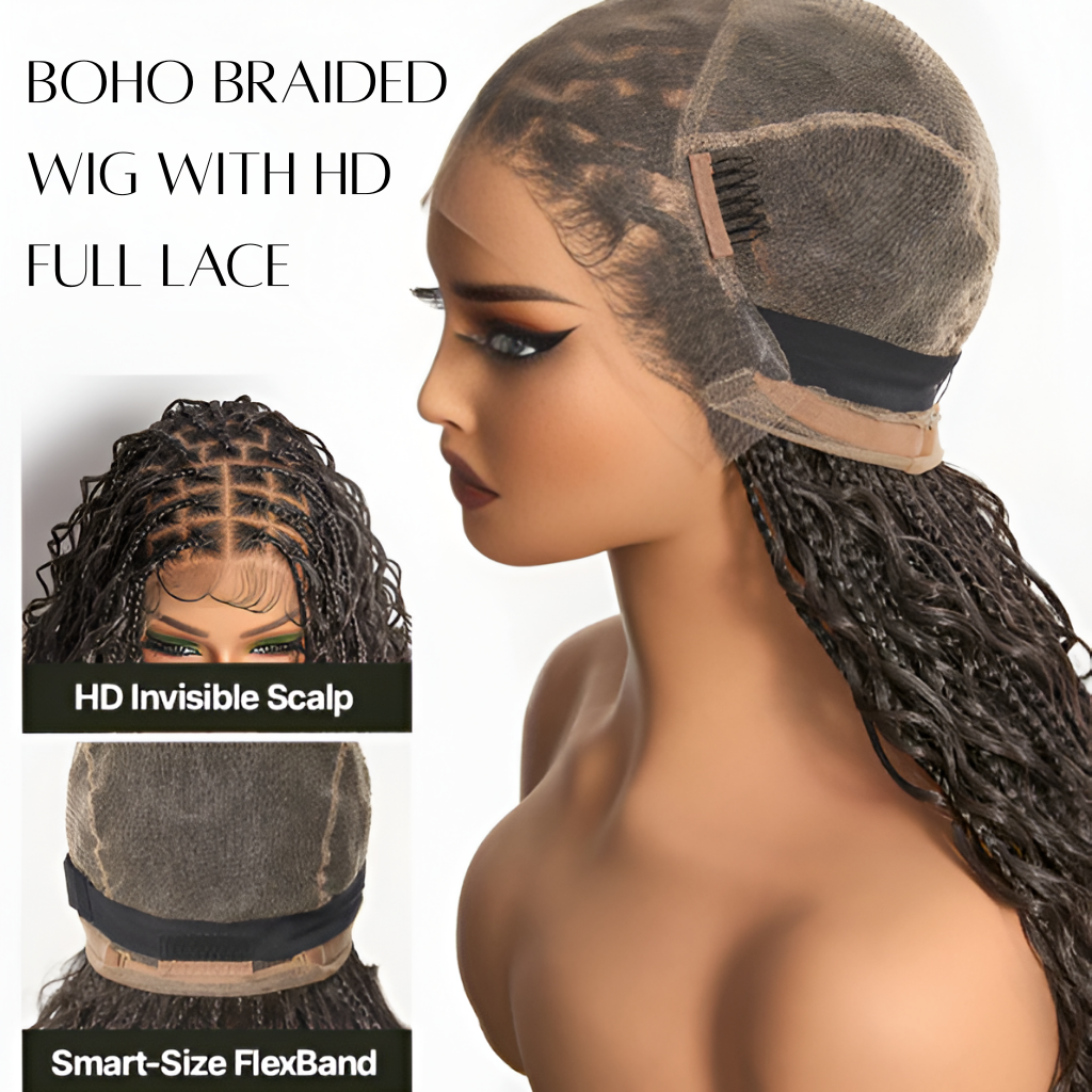 30" Full Lace Boho Braid Wig - Grid Part Top with Mixed Boho Curls