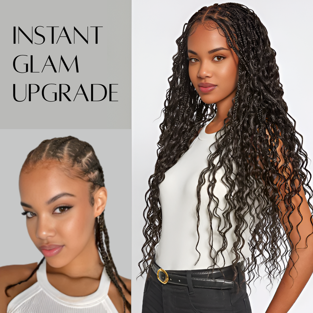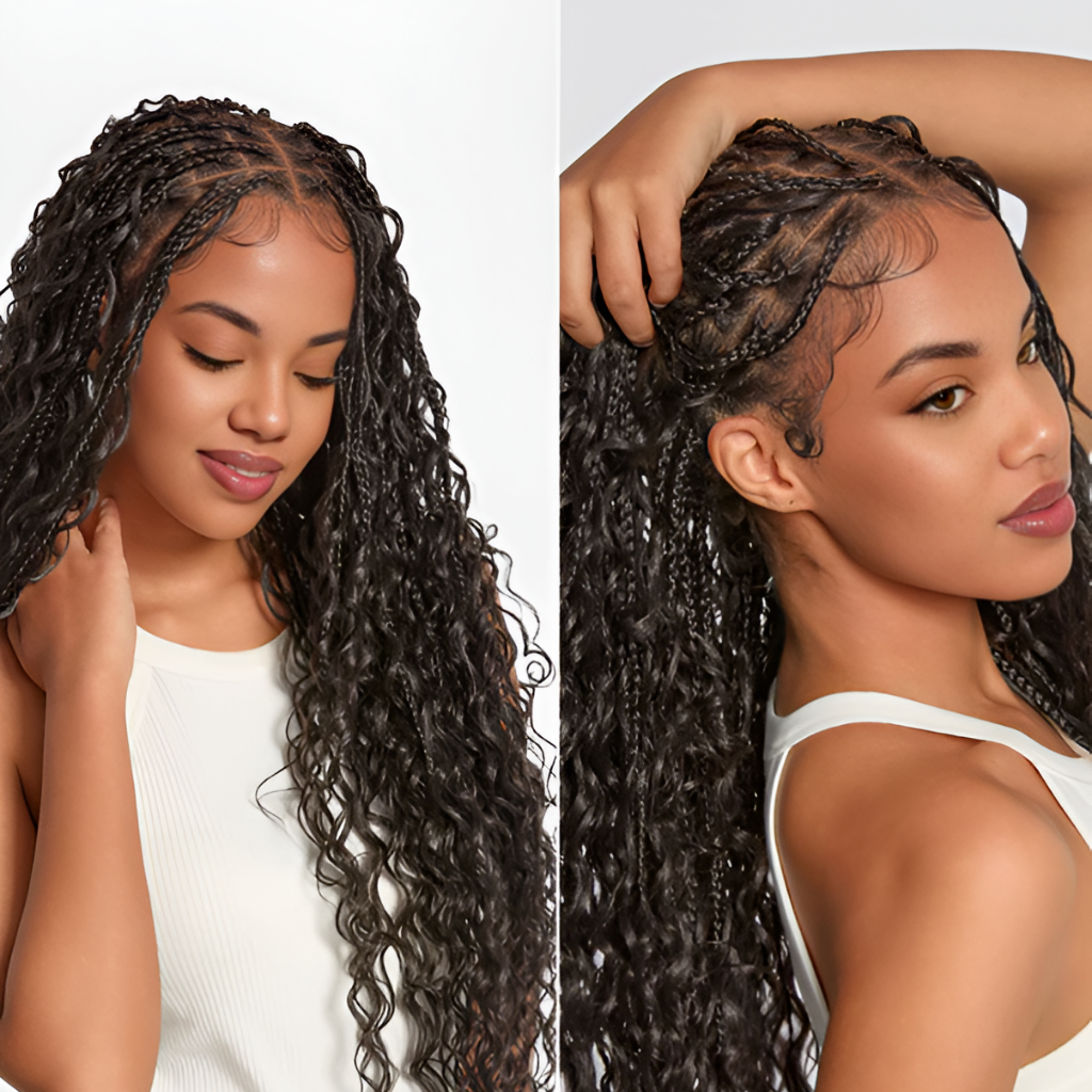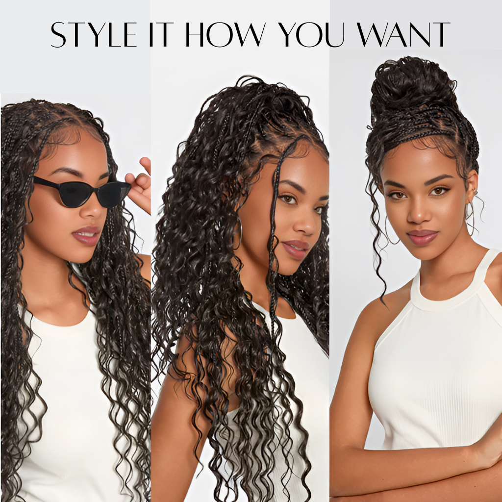 30" Full Lace Boho Braid Wig - Grid Part Top with Mixed Boho Curls
